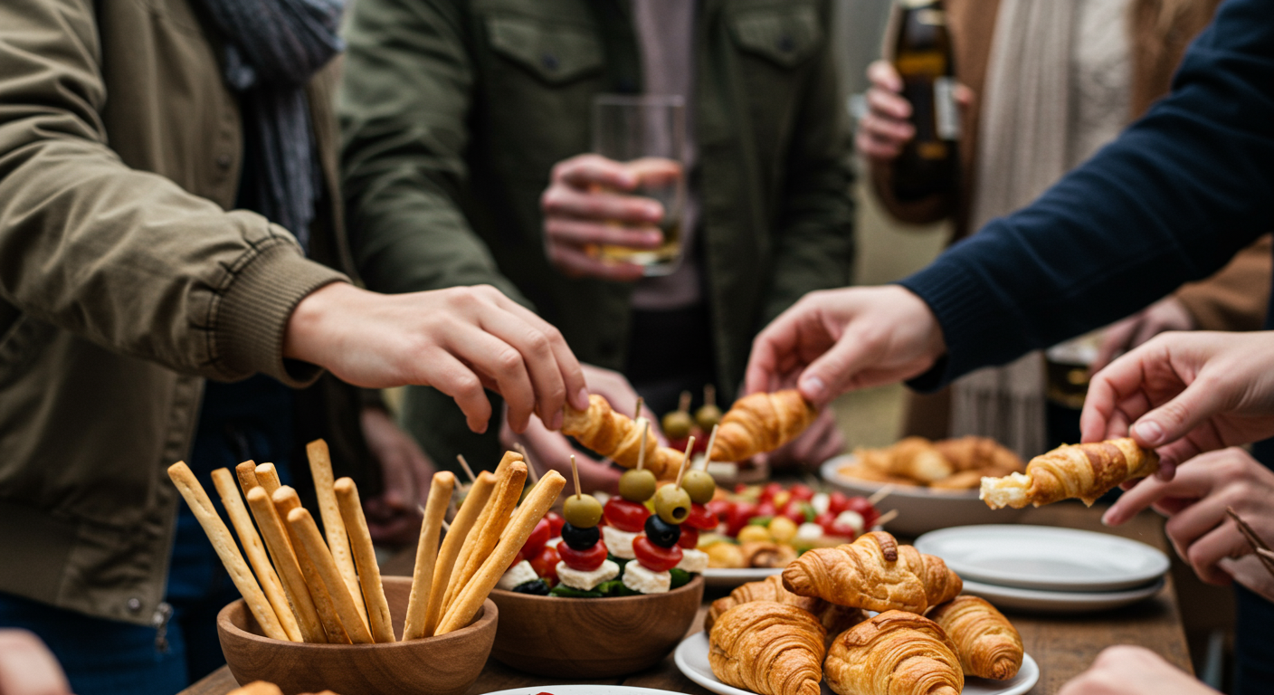 Provide a spread of tasty foods and beverages